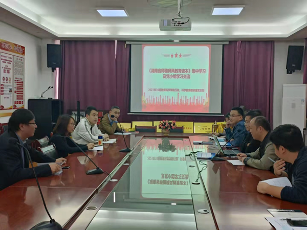 10月26日,我院在特立楼北栋208会议室开展了关于《湖南省师德师风教育读本》和《典型案例警示录》的集中学习,学院全体教师党员参加学习。