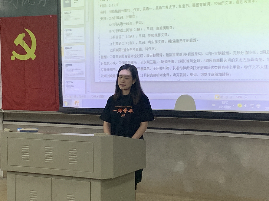 陈瑶同志从选择、成长、反思这三个方面进行了经验分享。我们要始终牢记学生最重要的是学习,懂得取舍,凡事提早做,不要拖到最后一分钟,学会列思维导图帮助学习等。善于利用自己的碎片时间,把不必要的小事完成,提高工作效率,找对适合自己的学习时间段,注意劳逸结合,摆正心态,舒缓压力。