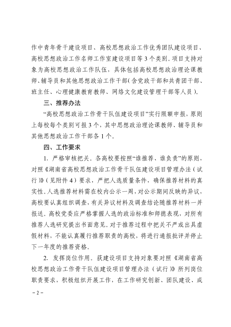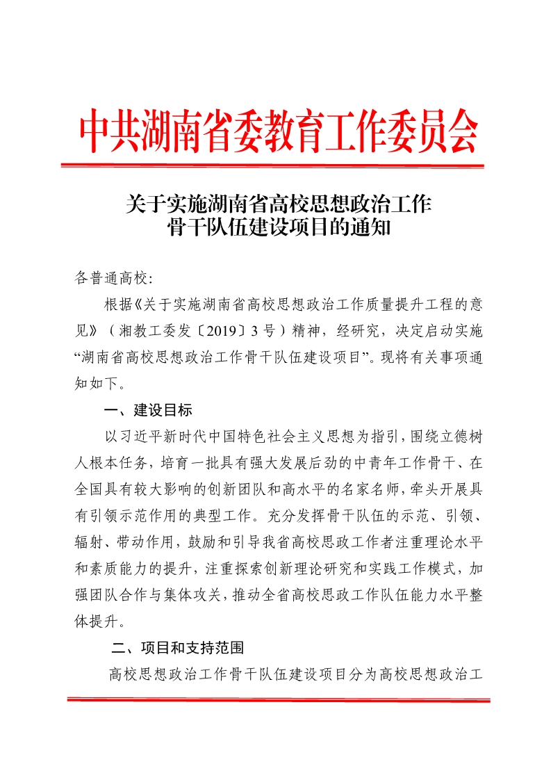 关于实施湖南省高效思想政治工作骨干队伍建设项目的通知