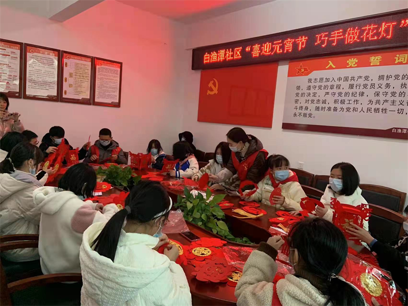 刘怡雨同学在社区制作元宵花灯