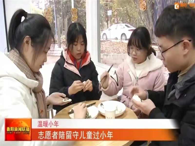 小年是团圆的日子,小年的年味除了包饺子、写春联,更有家人团聚的温暖。但有那么一些人,无法在团圆之日与家人团聚,比如来自衡阳市石鼓区第四中学的留守儿童们。谭可雨同学了解到情况后,积极报名参加陪伴留守儿童过小年的志愿服务活动,通过团衡阳市委机关“青年之家”,来到了石鼓区第四中学,在学校,谭同学一行为孩子们带来了一节青少年安全自护课,帮助孩子们了解各类安全小知识。除此之外,志愿者们还组织了包饺子、写春联等活动,大家分工合作,欢声笑语,孩子们被温暖的过年氛围包裹着,相关活动还被新湖南等众多媒体报道。