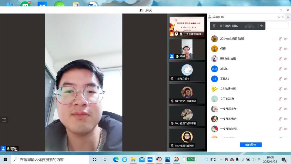 3月23日晚,教育学院学生第一党支部举行2022年上半年毕业生中共预备党员接收大会。受疫情影响,大会以腾讯会议的方式召开,支部全体正式党员、预备党员和部分入党积极分子参加,学院党委书记刘澍心、学生第一党支部书记邓魁出席会议。大会主要讨论李文静等9名发展对象接收为中共预备党员的问题。