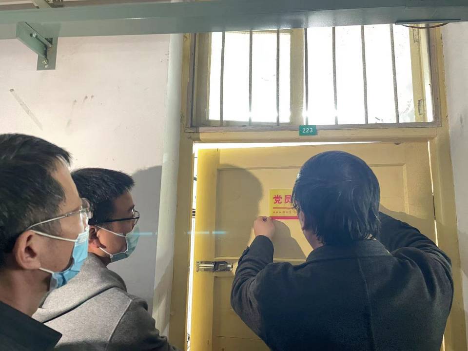 最后,刘澍心书记亲自将“党员寝室”标牌悬挂在学生党员寝室门上。同时,刘书记督促在场党员同志,在日常学习生活中要铭记党员身份,以身作则,牢固树立党员先锋意识,强化责任与担当。