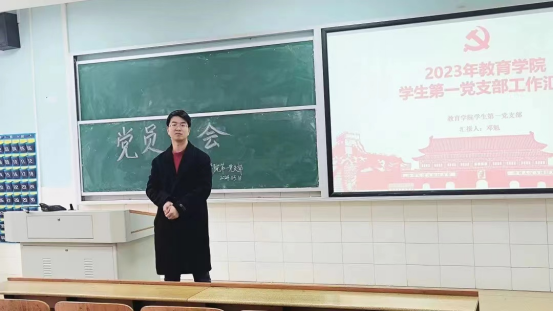 3月18日,教育学院学生第一党支部在怀中南201召开2023年度组织生活会,支部书记邓魁以及全体学生党员参加会议。