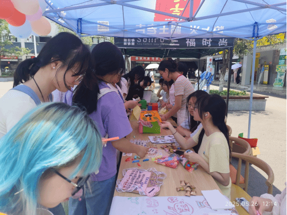 线下设置笑绘未来、吹爆压力、彩箱絮语、心识启航及“Yu见20岁的自己”手绘画接力五大主题活动。参与者每完成一项任务可获得特色贴纸,集齐五张贴纸可兑换抽奖机会,奖品包含校园文创、明信片、减压玩具等。活动现场,“笑绘未来”区域内,同学们专注地在“笑脸墙”绘制专属笑脸,并通过留言板传递鼓励话语;“吹爆压力”环节中,随着气球爆破的声响,内含鼓励纸条和糖果散落而出,不少同学坦言紧绷的情绪得到了释放;“彩箱絮语”处,红绿纸箱前人流不断,同学们将烦恼或期许写进纸条投入箱中,随后获赠红绳或千纸鹤纪念品;“心识启航”的心理知识问答摊位前,同学们积极参与答题,学习情绪调节、人际交往等实用技巧;“Yu见20岁的自己”手绘画接力活动现场,画笔在同学们手中传递,一幅幅描绘未来憧憬的画作不断涌现,现场氛围温馨而热烈。