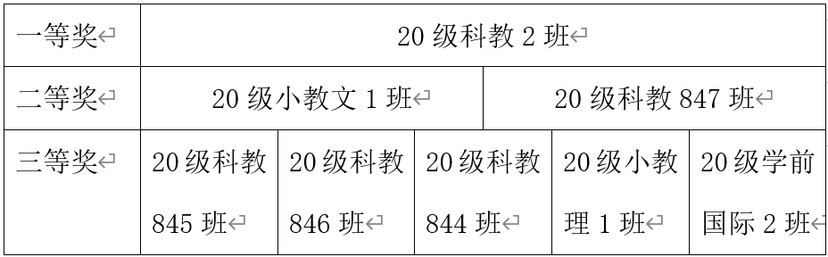 恭喜以下班级荣获奖项: