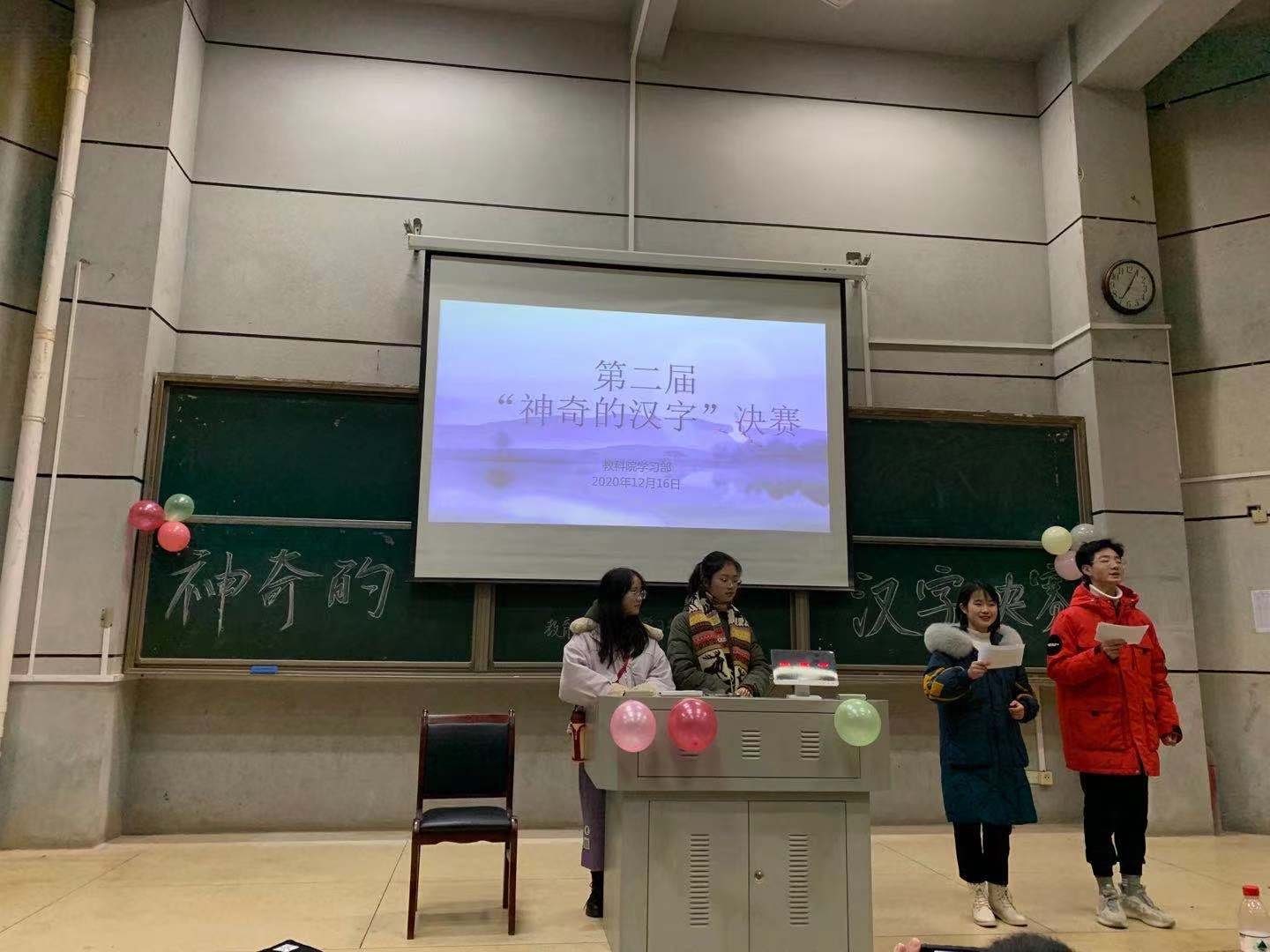 为弘扬汉字传统文化,教育科学院于12月16日晚7点在怀中110举办了二届“神奇的汉字”学习节活动,教科院学工办主任刘军老师、教科办郑雅匀老师辅导员石慧老师、杨菲老师、赵锋锋老师参与此次活动。