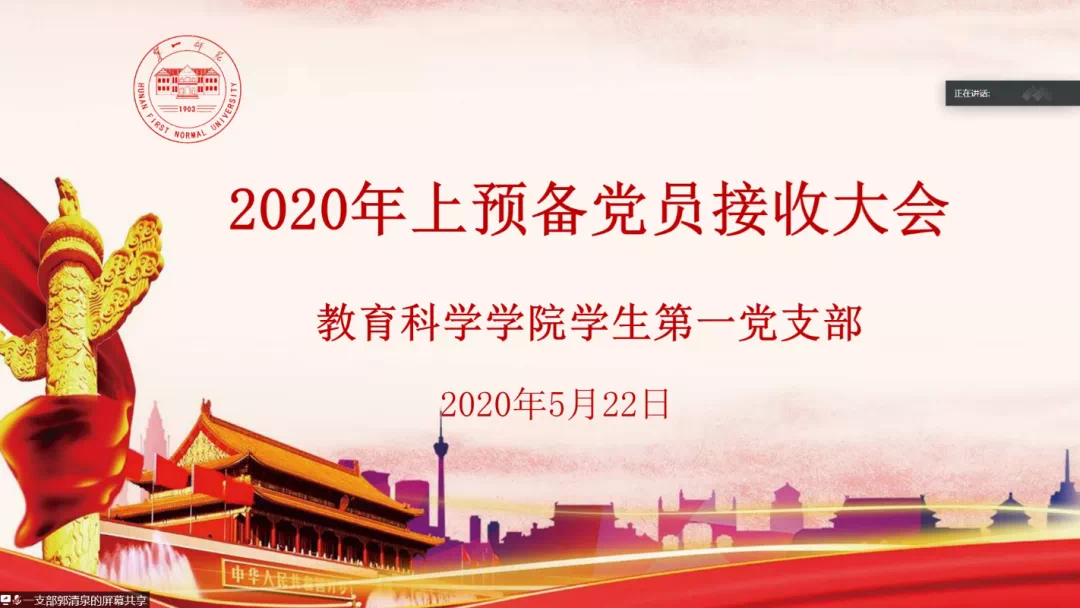 2020年5月22日晚18:30,教育科学学院学生第一党支部在腾讯会议顺利召开预备党员接收大会,此次会议主要讨论吸收罗顺等25名发展对象为预备党员的问题。出席本次大会的老师有学工办刘军老师,支部书记董晓娅老师,入党介绍人邓魁、杨翼丞、杨杨、李湘林等老师以及支部的31位正式党员和55名预备党员。会议由支部新任组织委员郭清泉同志主持。