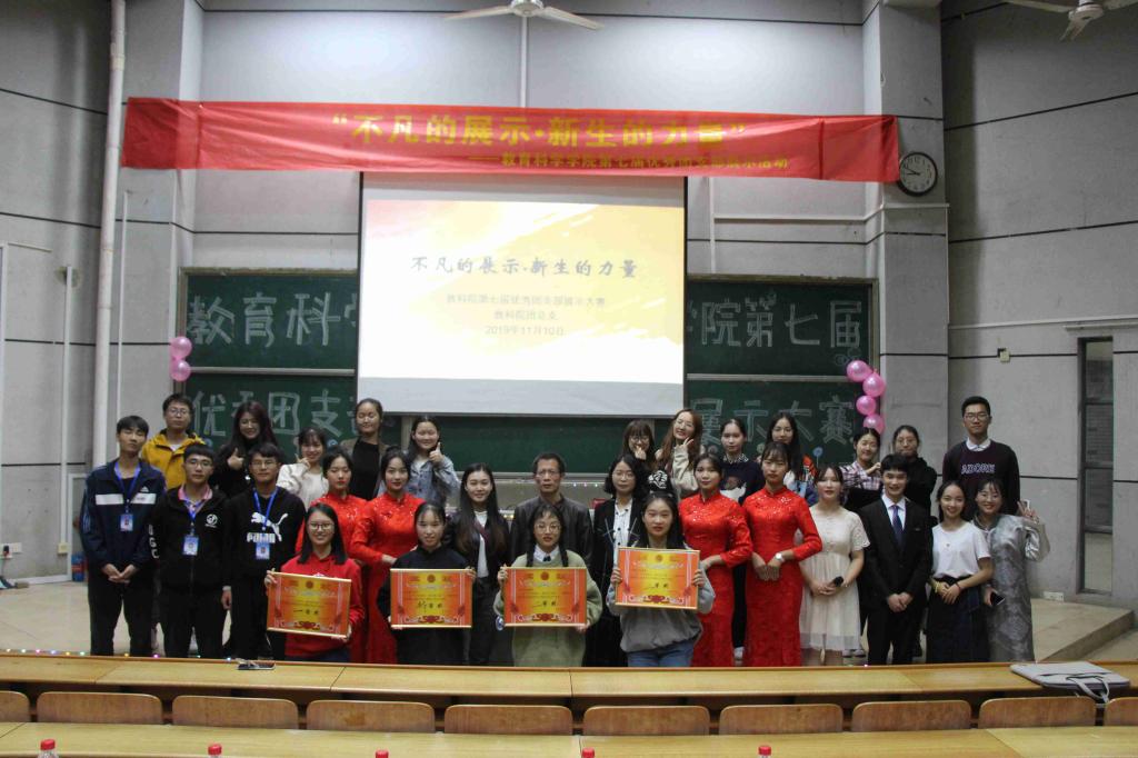 2019年11月10日晚,教育科学学院第七届优秀团支部展示大赛决赛于怀中楼南栋110教室顺利举行。我院党总支副书记张志新 、团总支书记孙三元、辅导员杨杨、邓魁、董晓娅、刘森林老师受邀出席,约400名学生到场观赛。