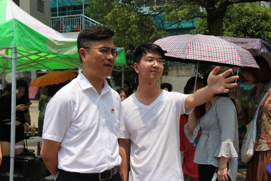 5月24日,教育科学学院“筑梦青春、追梦成长”5·25心理健康节主题户外活动在国基广场如期举行。学生工作部(处)部长陈志武、学院党总支书记陈天涯、主持学院行政工作副院长胡春光、党总支副书记张俭明、学工办主任刘军及各辅导员老师莅临现场参观并进行工作指导。