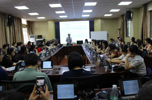 2018年5月15日下午,教育科学学院“红烛论坛”系列活动之“专家讲学”在特立楼北栋204商务英语谈判室举行。英国知山大学Mark Schofield教授受邀作了题为“卓越教学框架与研究教学学术的关系”、“卓越教学——超越言辞,付出实践”两场专题报告。报告会由蒋蓉院长主持,国际交流处何晓澜副处长出席活动,教科院部分师生到场聆听。