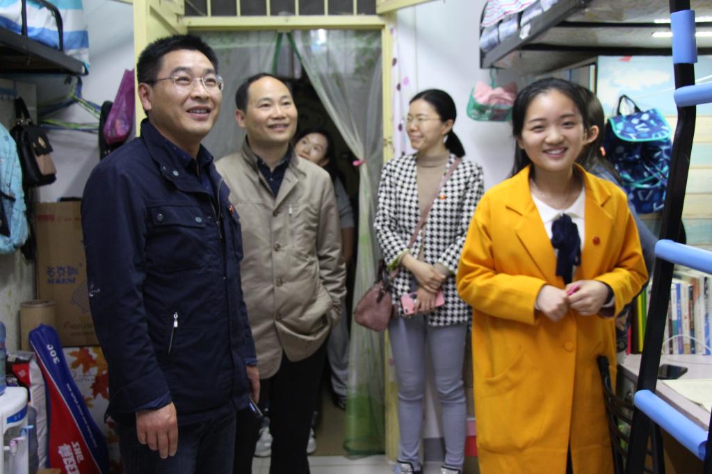 最后,张俭明副书记和王建平副院长一同前往学生寝室为党员示范寝室进行了挂牌。