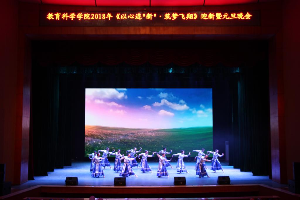 晚会在一段记录教科学子大学生活精彩瞬间和领导老师们对新年美好祝愿的视频中拉开了帷幕。一支动感十足、魅力四射的爵士开场舞引爆了全场的热烈气氛,曲风清雅、舞姿优美的古典舞《忆江南》让人神游于秀美江南水乡之间,格调高亢、动作奔放的蒙古舞《遥远的妈妈》展示了天高任鸟飞、原阔凭马奔的草原风情,舞步矫健、激情似火的拉丁舞《海伦·东方之焰火拉丁》给观众带来了强烈的视觉冲击,低沉悠扬的多人组合唱《一辈子朋友》传达出教科学子对同学情谊的珍视,诙谐幽默却蕴含哲理的小品《我的路》和《情定一师》则从多个角度抒发了一师学子对母校的热爱,技巧与情感俱备的钢琴独奏曲《快乐的女战士》更是余音绕梁不绝,令人心醉。此次晚会节目精彩纷呈、高潮迭起,全场洋溢着热烈和谐、奋发向上的青春气息,全方位展现了教科学子扎实的专业功底和昂扬的精神风彩。
