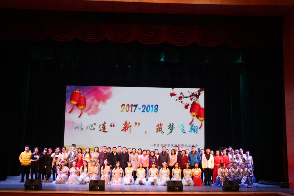 2017年12月25日晚,教育科学学院2018年“以心连‘新’,筑梦飞翔”元旦晚会在音乐剧场隆重举行。校长童小娇、公共实验管理中心主任朱承学、教务处副处长李建亚、学生工作处副处长欧阳伶俐、美术设计学院副书记舒克斌、教育科学学院负责人蒋蓉、陈天涯、张俭明、刘丽群及全体专兼职辅导员老师应邀出席,近800名师生共同观看了晚会。