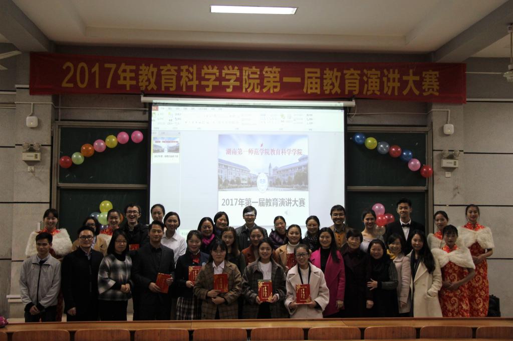 为进一步培养师范生专业情意,提升教育综合素质,2017年11月28日晚,由我院各专业教研室联合组织的教育科学学院第一届教育演讲大赛在文科楼B栋206教室顺利举行。学院院长蒋蓉、党总支书记陈天涯、副院长刘丽群、胡春光、院长助理曾晓洁、清水塘第二小学校长刘云燕、湖南第一师范第一附属小学副校长余远群、第二附属小学王兆华老师应邀到场担任评委,李金国博士等300余名师生参与了活动。