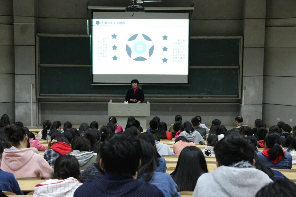 陈雷校长讲述了作为一师校友的她过去与一师的深厚情缘,介绍了我国小学教育的现状以及小学教育变革困难的原因,并将中国与外国的教育模式进行对比,阐述了中国现阶段小学教育具有的优势与不足。陈雷校长为同学们描绘了未来教育的模式与Altschool建设的微校教育模式,强调教育要注重人性化、要具有选择性。在谈到著名的芬兰教育经验时,陈雷校长鼓励同学们通过课程开发来引领未来教育的教学潮流。在聊到人工智能和未来教育之间的关系时,陈校长强调人工智能不仅不会干扰未来教育,在一定程度上还会推进未来教育的发展。