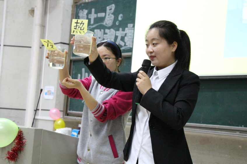 经过初赛、复赛和预决赛的层层选拔,来自14、15、16级的146名选手中的10名选手脱颖而出,进入半决赛。本次比赛设微型授课、教育问答、现场教师技能展示三个环节。罗云同学的《少年闰土》利用生动的教具和肢体语言再现了少年闰土握着胡叉走近猹的画面,使同学体会到了动词的含义和用途。毛小东的《平均分》运用小朋友们都喜爱的卡通人物作为线索,使枯燥的数学内容也变得生动活泼。此外,来自学前专业的胡萍,用动听的语言、丰富的教态完整的呈现了幼儿诗歌《叶子》的教授过程。教育问答时,选手们面对老师们提出的问题从容应对,巧妙化解难题,受到了老师的表扬与肯定。选手们现场教师技能的展示则让我们看到了身为教师应该具备的素养。