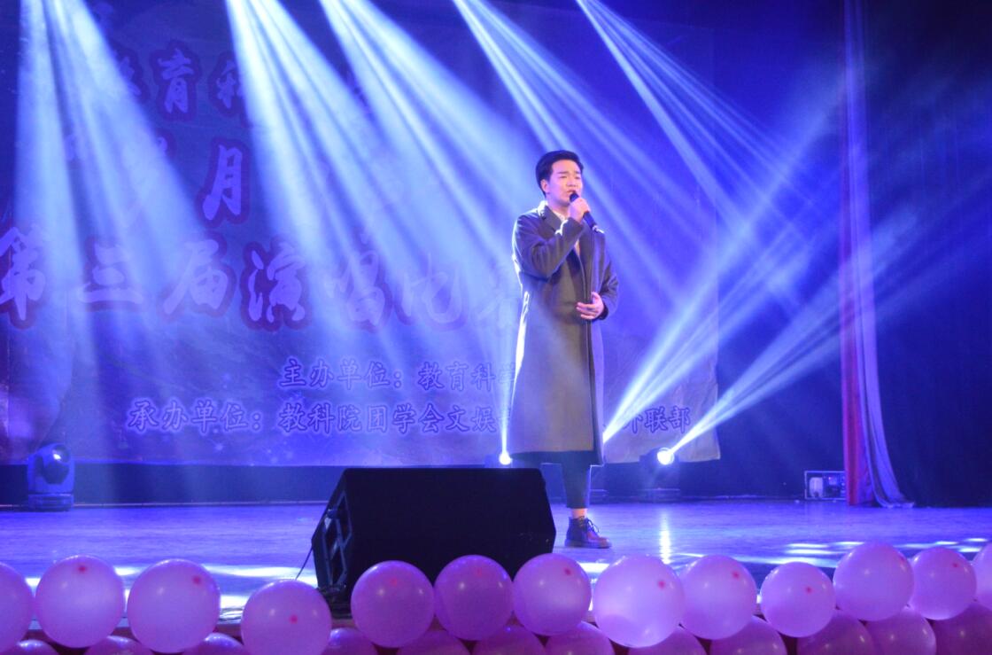 2016年11月24日晚,由教育科学学院学生会举办的“岁月留声”第三届演唱比赛在科技楼实验剧场隆重举行。出席本次比赛的嘉宾有校团委副书记邓海平、文传院副书记李玲、教科院党总支书记陈天涯、副院长王建平、胡春光,学工办主任陶青、刘军老师及全体辅导员。教科院党总支副书记张俭明和何学范、石慧、谭娜、杨杨等老师受邀担任评委,共400余名师生到场观看。