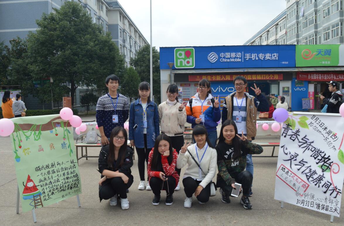 2016年11月3日上午,由学校学生会心育部和教育科学学院学生会心育部联合举办的“青春与和谐执手,心灵与健康同行”大学生心理健康日趣味活动在东方红校区文化广场成功举办。