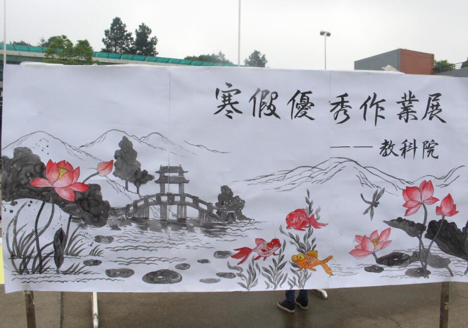 为进一步提高教科院学生的教师技能,在上学期放假前教科院学习部统一布置了寒假美术作业,同学们利用寒假时间按要求保质保量地完成了美术作业。经院团总支宣传部的认真筛选,最终有67副优秀作品参展。作品内容丰富,形式多样,有新颖实用的简笔画、手抄报和教学卡片,有功底扎实的水墨画和水彩画,还有精致漂亮的剪纸作品等,令人耳目一新、过目难忘。
