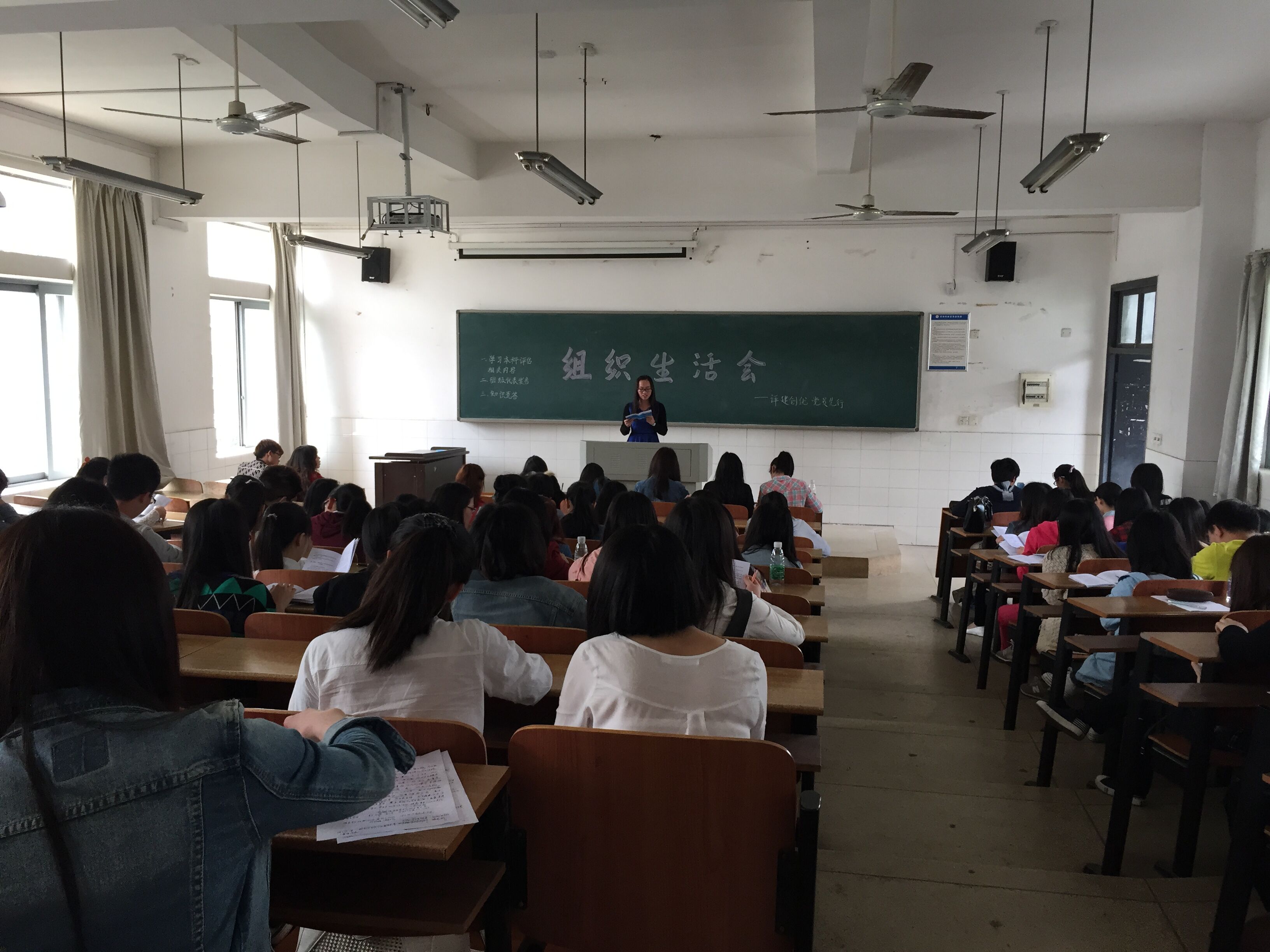 为迎接本科合格评估,动员党员发挥模范带头作用,在迎评工作中主动工作,服务奉献,教育科学学院三个学生党支部于2015年4月24中午12:00-13:20在文b301、302、303三个教室召开了组织生活会。教科院160多名学生党员及学生党员工作负责人刘军、董晓娅、罗娱、石慧老师出席了活动。