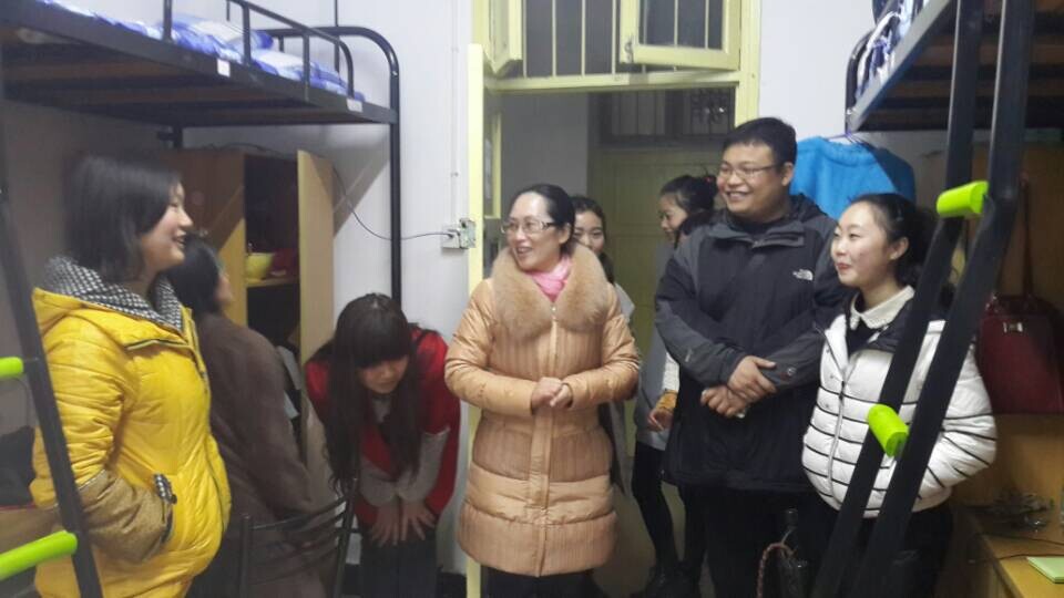 2015年3月1日下午,本学期开学第一天,教育科学学院党总支副书记谭玉兰带领学院全体专兼职辅导员走访了学生宿舍。