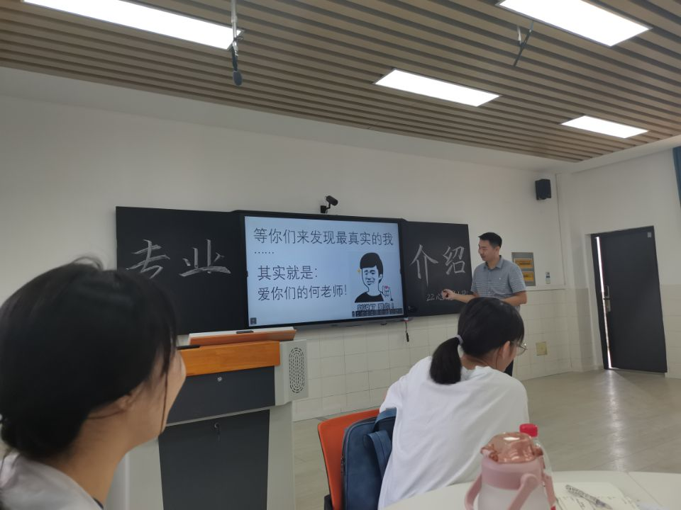 张志新副书记为新生们带来寄语及期望,张书记的讲话让大家斗志满满!刘文主任的介绍演讲可谓是干货满满又不失风趣。首先向新生们介绍了本专业的基本信息和就业前景;接着配合简洁的ppt为新生们提供了一份大学四年清单;最后对新生们寄予了诚挚厚重的期望。班主任何浩宇博士通过风趣的ppt和诙谐的表达,给新生们带来一场充满幽默的自我介绍。