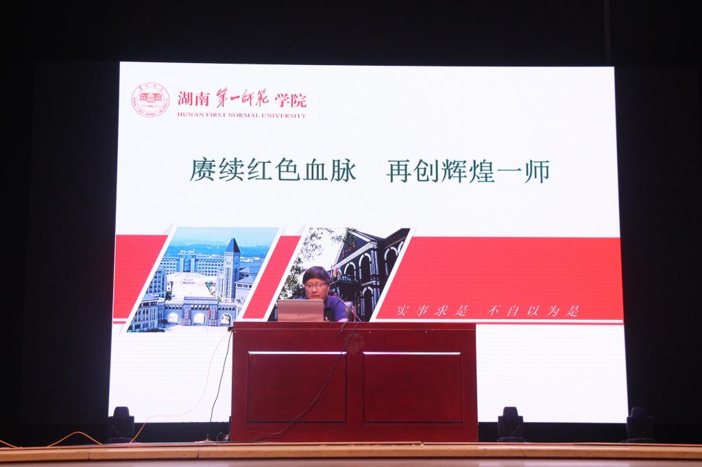 9月7日下午2点,教育学院在田汉剧院成功开展了以“赓续红色血脉,再创辉煌一师”为主题的入学教育专题讲座,学工办主任刘军,团委书记孙三元及新生辅导员朱晶平、杨菲参与讲座。此次讲座由我院副院长陈华仔主持,党委书记刘澍心主讲。365名教育学院新生聆听讲座。