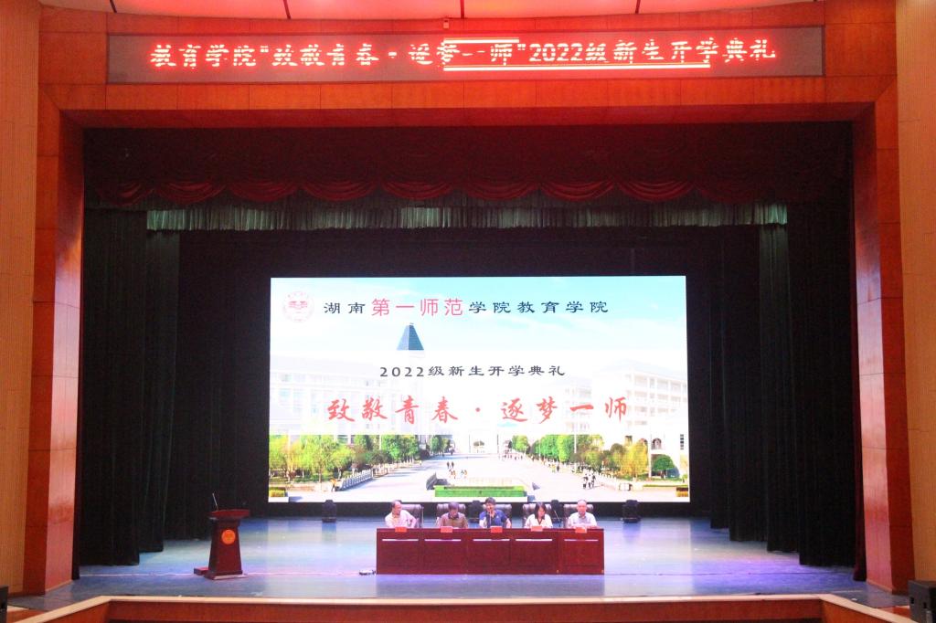 2022年9月7日上午8:00,教育学院“致敬青春·逐梦一师”2022级新生开学典礼在学校田汉剧场隆重举行。我院党委书记刘澍心,党委副书记、院长刘丽群,党委副书记张志新,副院长黄月胜、陈华仔,学工办主任刘军,团委书记孙三元及新生辅导员朱晶平、杨菲出席典礼。365名教育学院新生参加开学典礼。典礼由学院党委书记刘澍心主持。