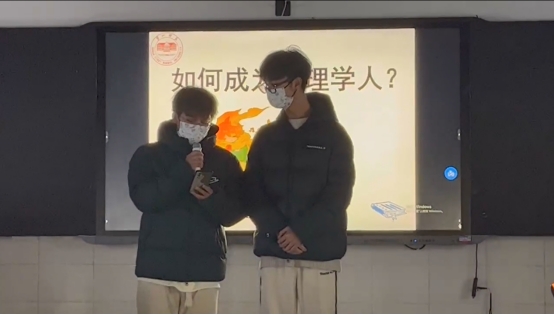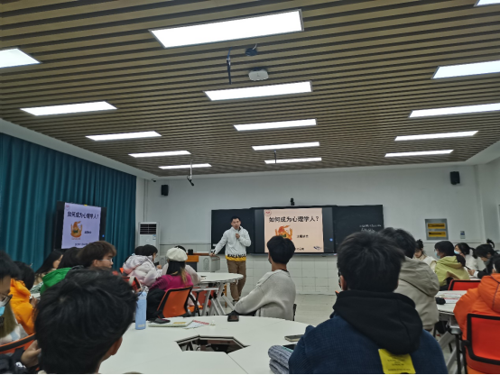 接下来,班主任何浩宇老师抛砖引玉,就如何成为心理学人的几个关键词进行的简单的引导和介绍:专业信仰与原则、直接经验与间接经验、惰性和延迟满足、主动学习和被动学习、认知思维的深度与广度等。