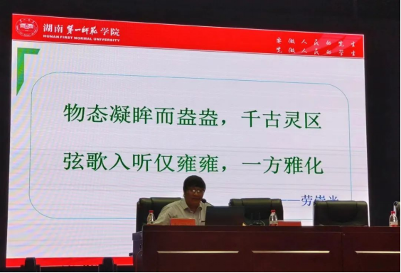 “千年学府,百年师范”。刘澍心书记立足于湖南一师的光辉校史,引经据典,声情并茂地谈起学校发展故事、知名校友事迹、湖湘文化起源等,向新生们诠释了敢为人先的湖湘精神,展现了丽泽千秋的历史文脉。刘书记鼓励新生们要坚定理想信念,提高自身修养,展现一师风采,争当有志有为的一师青年,共同写就一副底蕴深厚的一师精神画卷。