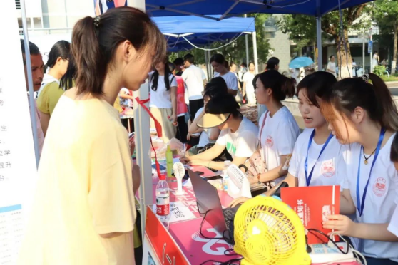 志愿者们早已在国基广场、校门、宿舍等地点准备就绪