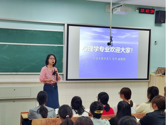 心理学系主任朱丹就心理学专业的基本情况和就业前景向新生进行分析。心理学专业是培养心理健康教育工作者和心理咨询师的专业,专业以课程育人和专业导师制为抓手,构建了“三性四维”的儿童心理健康教育教师培养模式,通过学习心理学原理、心理测量与评估、咨询心理学,培养咨询与干预能力,为促进社会心理健康发展做出贡献。