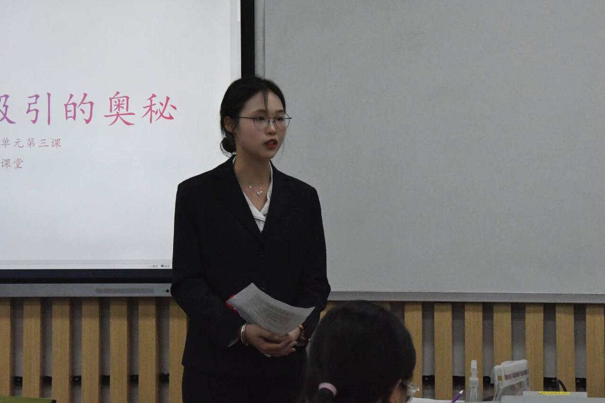 在紧张备考之后,选手们依抽签顺序入场。此次比赛分别在四个赛场同时开展,包含教育问答与片段教学两个环节。在授课过程中,选手们条理分明、阐释深入但浅显易懂。选手们借助提问、讨论等形式,活跃了课堂气氛,极大的激发了学生的学习兴趣。有选手运用实物展示等教学辅助手段,令课堂更为生动有趣。