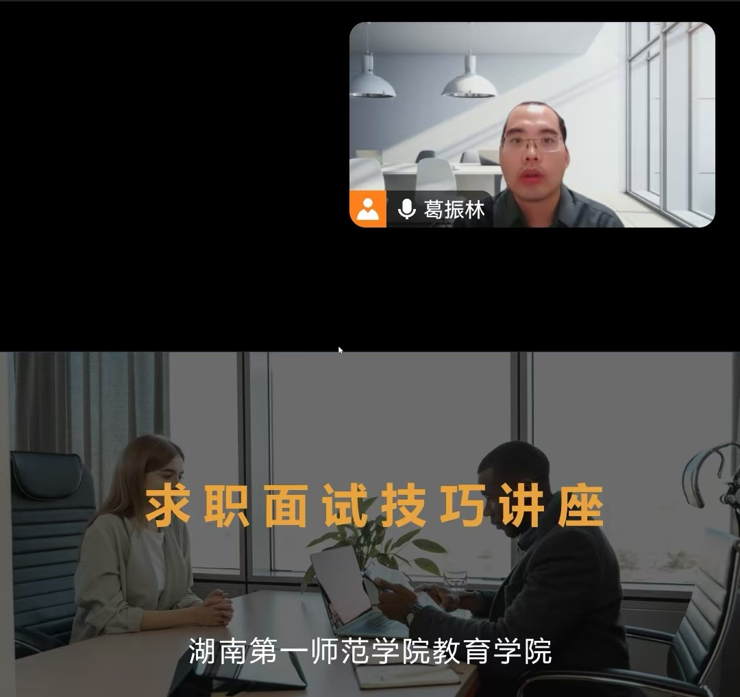 11月3日晚,教育学院举办求职面试指导专题讲座。讲座邀请到我院柔性引进高层次人才、资深管理咨询顾问、前程无忧职场导师葛振林主讲。讲座以腾讯会议方式举行,2023级心理学专业学生参会。