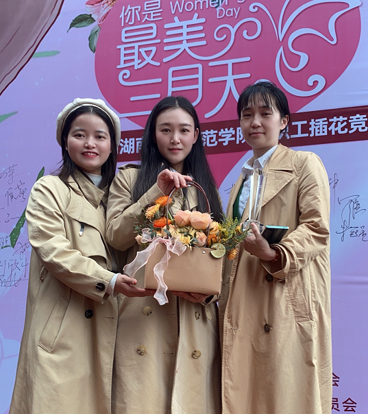 由孙三元、朱晶平、杨菲老师组成的教育学院分工会代表队,凭借自己对美的不同理解,经过精心修剪、巧妙搭配、点缀等步骤,把原本普通的花草变成了独具匠心的花艺作品。