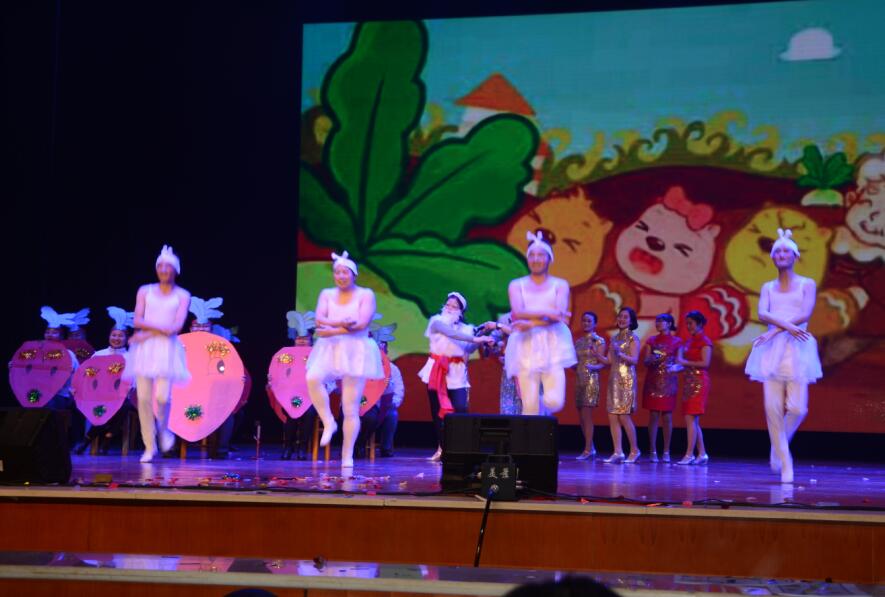 彭小奇书记上台致辞后,女教职工风采大赛拉开帷幕。由十六个分工会自编自导自演的节目向全校师生展示了一师女教职工积极向上的精神风貌与多姿多彩的艺术才华。教科院分工会的情景剧《教科总动员》,以一个特殊家庭齐心协力拔萝卜的剧情进行演绎。我院37名教师倾力演出,气质美女童小娇校长应邀参加了节目表演。蒋蓉院长绘声绘色的旁白,刘军、万湘桂老师精彩的反串,胡治伟等四位男老师欢快的四小天鹅,庄远红等八位女老师靓丽的旗袍展示,许兰等十位老师富有童趣的动物扮相……或诙谐或优雅或萌态可掬,展示出了教科院教师多才多艺、富有童心童趣,博得了现场观众一阵阵欢快的笑声、热烈的掌声!最终我院以富有趣味的表演,浓郁的教育情怀与专业素养体现,获得全场好评,荣获本次展示大赛二等奖。