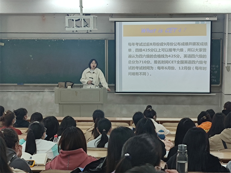 4月19日下午14:30,教育学院邀请外国语学院王婵老师,为我院18和19级学生开展了“如何备考大学英语四级”的讲座,我院近一百名学生参加了本次讲座。讲座伊始,王老师就大学英语四级的重要性,结构组成,考试规则等做了简单介绍。接下来王老师以真题举例的方式,就四级英语考试的每一个部分进行精讲,告知同学们答题技巧和思路,以及现阶段如何备考。紧接着,王老师结合自己多年指导四级考试的经验,针对同学们考试过程中常见的问题,进行了分析,并指导同学们如何在备考过程中避免这些问题。最后王老师就本次讲座和四级备考,与同学们进行了一对一交流,同学们纷纷表达了自己备考过程中遇到的难题,并向王老师请教破解之道。在整个讲座过程中,同学们听的非常认真,做了详细笔记,同学们普遍反映此次讲座让大家受益匪浅。