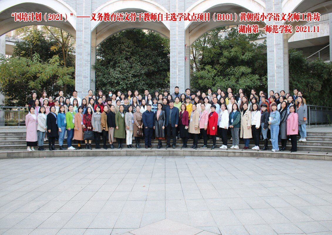 2021年11月14日,“国培计划2021”----义务教育语文骨干教师自主选学试点项目(B101)黄朝霞小学语文名师工作坊的线下培训开班仪式在bevictor伟德官网隆重举行。出席此次开班仪式的是湖南省中小学教师发展中心国培办主任龚明斌,bevictor伟德官网教育学院党委书记刘澍心,教育学院院长刘丽群,工作坊首席专家黄朝霞以及来自三湘四水的100名义务教育语文骨干教师。