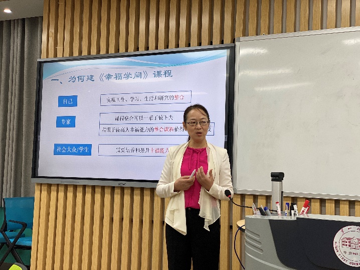 怎样打造实践类课程一流课程?沙龙活动上,戴小春教授以她历时6年时间打造的省级一流实践类课程“幸福学问”为例,从课程缘起、课程研发、课程实施、课程校区与社区实践、课程团队、课程资源、课程价值等多角度介绍了幸福学问课程的探索与实践。为教师们拓展课程建设的视野,拓宽校内课程建设与校外社会服务的交集提供了全新的视角。