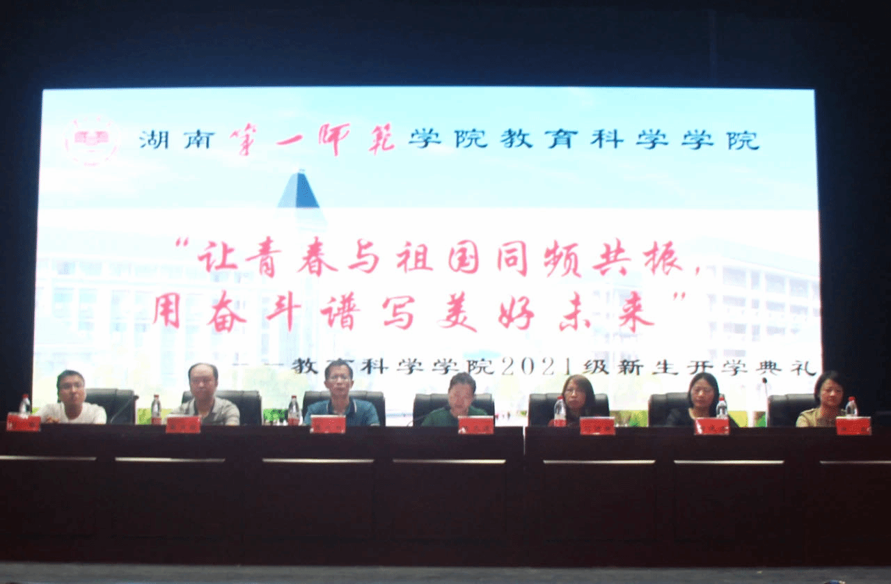 2021年9月19日上午8:30,bevictor伟德官网教育科学学院2021级新生开学典礼在学校田汉剧场隆重举行。我院党总支书记陈天涯、刘丽群教授、党总支副书记张志新、副院长曾晓洁、副院长黄月胜、副院长许兰、学工办主任刘军、团总支书记孙三元及辅导员老师们出席典礼。近900名师生参加开学典礼。典礼由党总支副书记张志新主持。