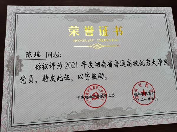 在湖南省教育系统“两优一先”、湖南省“优秀大学生党员”评选中,学院党总支获评湖南省教育系统“先进基层党组织”,2017级学前教育专业2班陈瑶同学获评湖南省“优秀大学生党员”。这是学院党总支在2018年获评首批湖南省普通高校“党建工作标杆院系”后获得的又一荣誉。