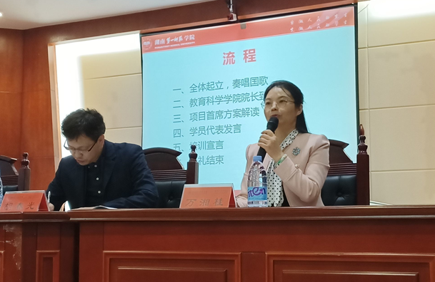 在开班典礼上,胡春光院长代表学院发表了热情洋溢的致辞,对来自河南省的100名学员表示了热烈的欢迎。首席专家万湘桂代表本次国培项目团队讲话,从课程设置、专家团队组建、学员考核与评价等多方面全方位、多角度地详细解读了本次国培的主要内容,并勉励所有学员充分利用这次国培机会增强法治与安全意识,提高对幼儿园的安全管理水平。来自平顶山市卫东区第二幼儿园孙燕娜园长代表全体学员发言,表示将珍惜这次难得的学习机会,遵守国培管理各项要求,拓展视野,深入学习安全管理的办法,提高办园水平。最后,所有学员进行了集体宣誓。
