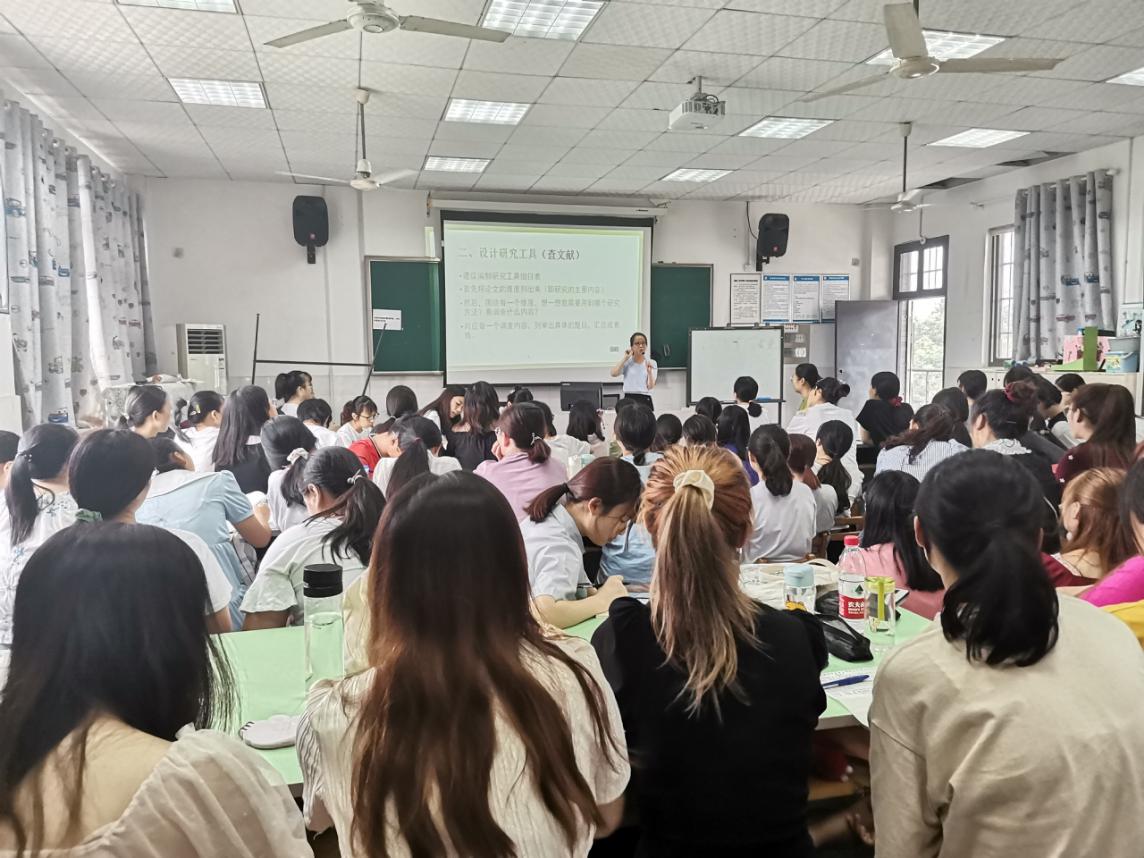 其后,为引导同学们充分利用下园实习机会收集毕业论文素材,确保毕业论文完成的进度和质量,学前教研室邓祎老师和袁小平老师就毕业论文的撰写开展专题培训。邓老师就写作环节及撰写规范与同学们进行交流,详细解说了包括选题、开题、初稿、中期检查及定稿、论文检测、成绩评定、答辩、归档各个环节,特别强调论文撰写过程中文献查阅、研究工具细目表制定的方法和要求。在写作建议上,袁教授强调要把学习态度放第一位、多与指导老师沟通、多查多看文献资料、合理安排时间等内容。