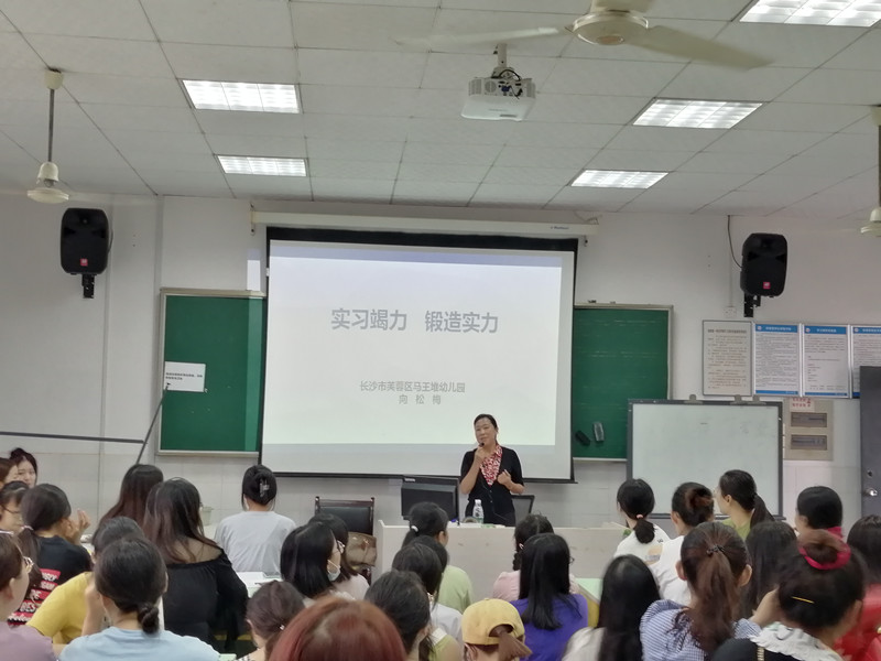 9月4日上午,学前教育专业举行了2017级教育实习培训与动员会。马王堆国际幼儿园园长向松梅受邀进行专题培训讲座,2017级学前教育专业全体同学、学前教育教研室全体教师参加会议,学前教育教研室主任、专业负责人万湘桂老师主持会议。