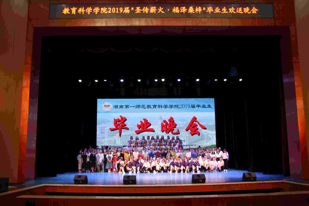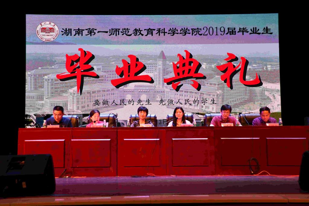 6月3日晚,教育科学学院2019届毕业生毕业典礼暨“圣传薪火,福泽桑梓”毕业晚会于田汉剧场隆重举行。bevictor伟德官网校长童小娇、教务处处长蒋蓉、东方红小学校长周大战、周南梅溪湖小学校长徐信、教育科学学院党政负责人陈天涯、胡春光、王建平及教师代表出席典礼。教科院党总支副书记张俭明主持本次典礼,700余名毕业生到场参加了典礼。