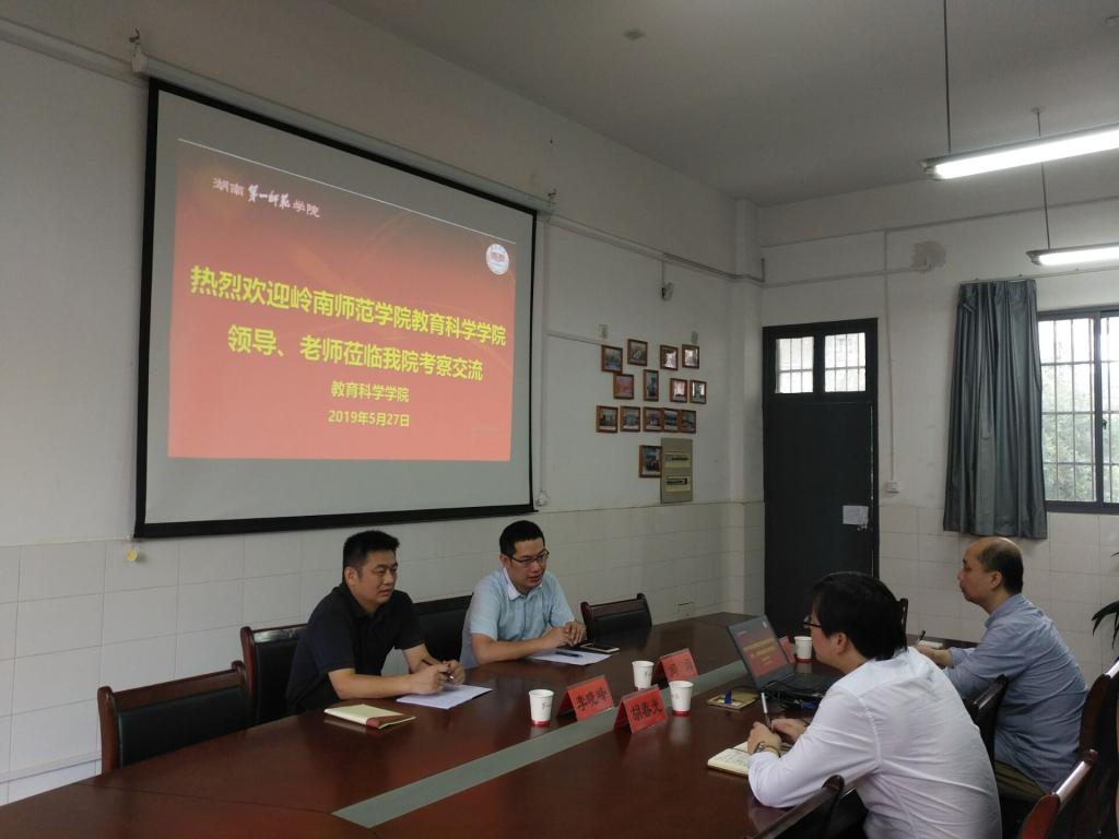 2019年5月27日上午,岭南师范学院教育科学学院副院长李晓峰、教学秘书闫闯两位老师来我院进行考察交流。我院胡春光副院长、院教科办汤勇主任在特立楼北栋203会议室热情地接待了来访人员。
