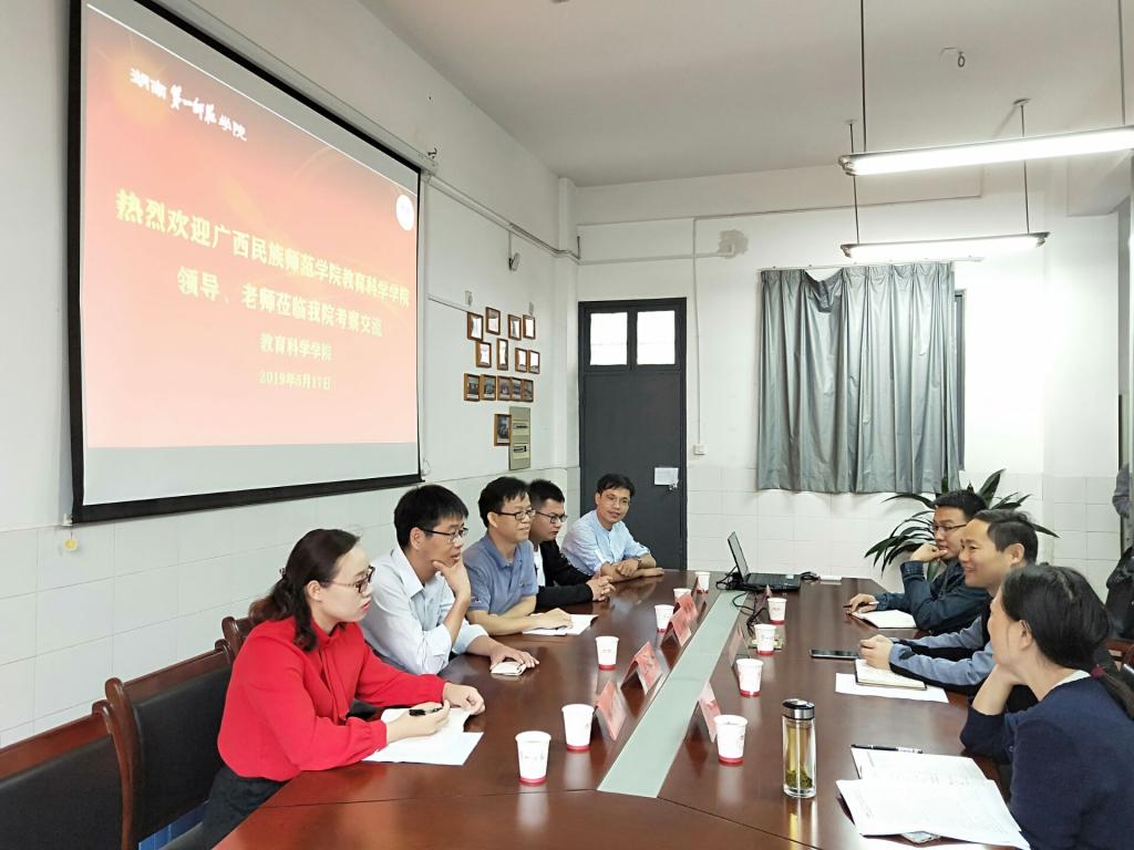 2019年5月17日上午,广西民族师范学院教育科学学院蓝同磊副院长、中文教研室王波平主任、团委黎琼芳书记等一行六位教师来我院考察交流。我院王建平副院长、小学教育教研室邓栩主任及我院学工办刘军老师在特立楼北栋203会议室热情地接待了来访人员。