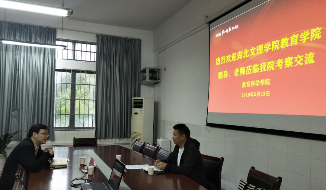 2019年5月13日上午,湖北文理学院教育学院熊德明副院长来我院考察交流。我院胡春光副院长在特立楼北栋203会议室热情地接待了来访人员。