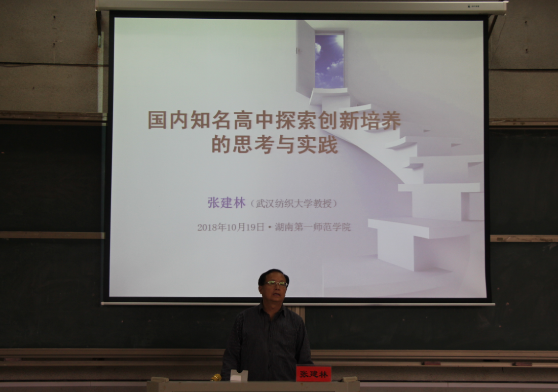 2018年10月19日下午,教育科学学院“红烛论坛”系列活动之“专家讲学”于润寰楼南栋105教室顺利举行。武汉纺织大学博士生导师张建林教授做了题为“国内知名高中探索创新培养”的精彩讲座。本次讲座由我院副院长王建平主持,共200余名学生到场聆听。
